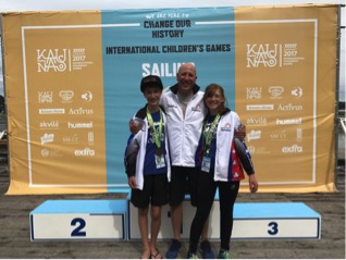 Our sailors Ryan Rubadeau and Gabriella Littleton each won a bronze medal at the International Children’s Games in Kaunas, Lithuania. Gabriella finished third in the Laser 4.7 girls’ division, whilst Ryan finished third in the Optimist boys’ division. Our sailors kept smiling despite stormy conditions in which many boats capsized!